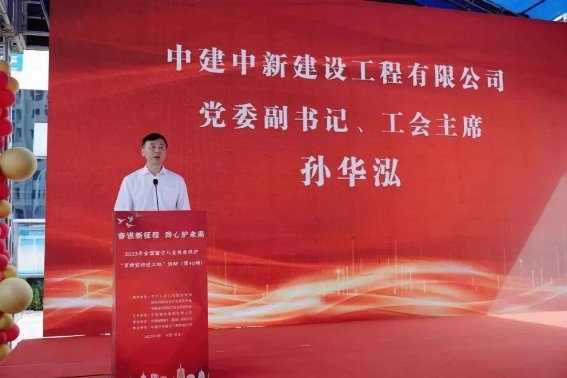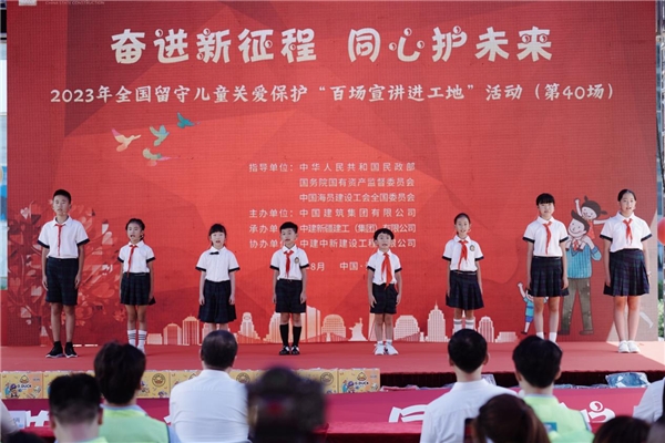 8月18日,由中華人民共和國民政部、國務(wù)院國有資產(chǎn)監(jiān)督管理委員會、中國海員建設(shè)工會全國委員會指導(dǎo),中建集團(tuán)主辦,中建新疆建工承辦,中建中新協(xié)辦的“奮進(jìn)新征程同心護(hù)未來”2023年全國留守兒童關(guān)愛保護(hù)“百場宣講進(jìn)工地”(第40場)活動在中建中新劉家下莊社區(qū)改造項目舉行。