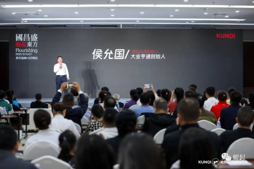 本次發(fā)布會(huì)尾聲,鯤起品牌創(chuàng)始人、大業(yè)亨通董事長(zhǎng)侯允國(guó)先生等多位領(lǐng)導(dǎo)上臺(tái)共同進(jìn)行品牌戰(zhàn)略發(fā)布,啟動(dòng)“鯤起”,把發(fā)布會(huì)推向高潮。