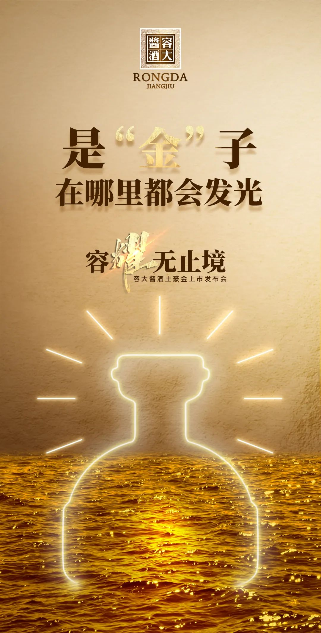 這是容大醬酒的手筆。4月下旬,容大醬酒戰(zhàn)略新品即將上市。樸實(shí)的宣傳語(yǔ),透露出其口糧醬酒的市場(chǎng)定位;奢華的土豪金顏色,又給人無(wú)限遐想,讓人對(duì)其品質(zhì)有了更多期待。