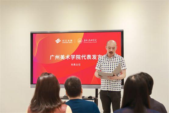 儀式上,廣州美術(shù)學(xué)院教學(xué)實(shí)驗(yàn)中心肖勇主任向漢王友基一行表示熱烈歡迎,并介紹學(xué)校發(fā)展情況。他指出,經(jīng)過廣州美術(shù)學(xué)院校友辦、影視后期基地與漢王友基的充分溝通,雙方發(fā)揮優(yōu)勢(shì)互補(bǔ),達(dá)成此次校企戰(zhàn)略合作的重要舉措。影視后期教育基地的落成,將聚焦在人才培養(yǎng)、專業(yè)共建、數(shù)字藝術(shù)、設(shè)計(jì)生態(tài)等多方面,開拓校企合作的新領(lǐng)域與新途徑,共同培養(yǎng)高素質(zhì)人才,打造粵港澳大灣區(qū)教育基地。