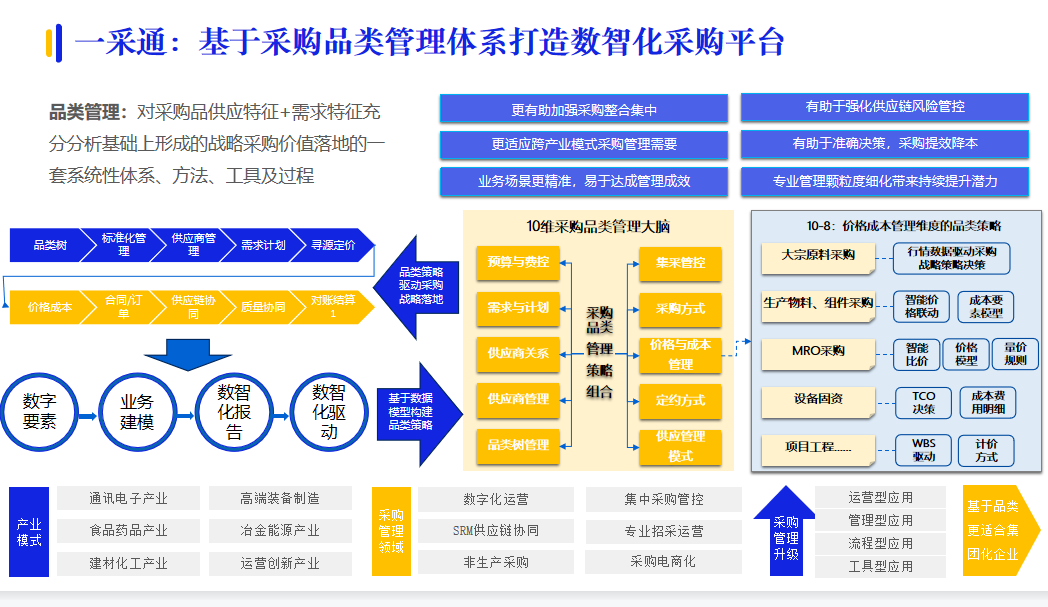 還有一采通,基于采購品類管理體系,打造了數(shù)智化采購平臺。