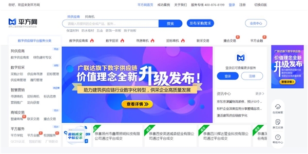 數(shù)字供應(yīng)鏈產(chǎn)品理念整體升級后,以“客戶為中心”的服務(wù)宗旨,通過“兩大解決方案”助力建筑供應(yīng)鏈行業(yè)內(nèi)企業(yè)進(jìn)行數(shù)字化轉(zhuǎn)型及升級,圍繞平方網(wǎng)、平方招采等平臺,讓采購業(yè)務(wù)合規(guī)化、專業(yè)化、系統(tǒng)化,讓建材供應(yīng)商降低營銷成本和風(fēng)險(xiǎn),增強(qiáng)企業(yè)的競爭力。
