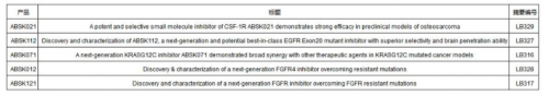 其中包括其自主研發(fā)的已獲中美雙突破性療法認定 的CSF-1R抑制劑Pimicotinib(ABSK021) 和可能成為best-in-class的新一代克服耐藥突變的EGFR Exon20抑制劑ABSK112 ,以及新一代克服耐藥突變的FGFR4 抑制劑ABSK012和FGFR抑制劑ABSK121,新一代KRAS抑制劑ABSK071的最新臨床前和轉(zhuǎn)化醫(yī)學研究進展。