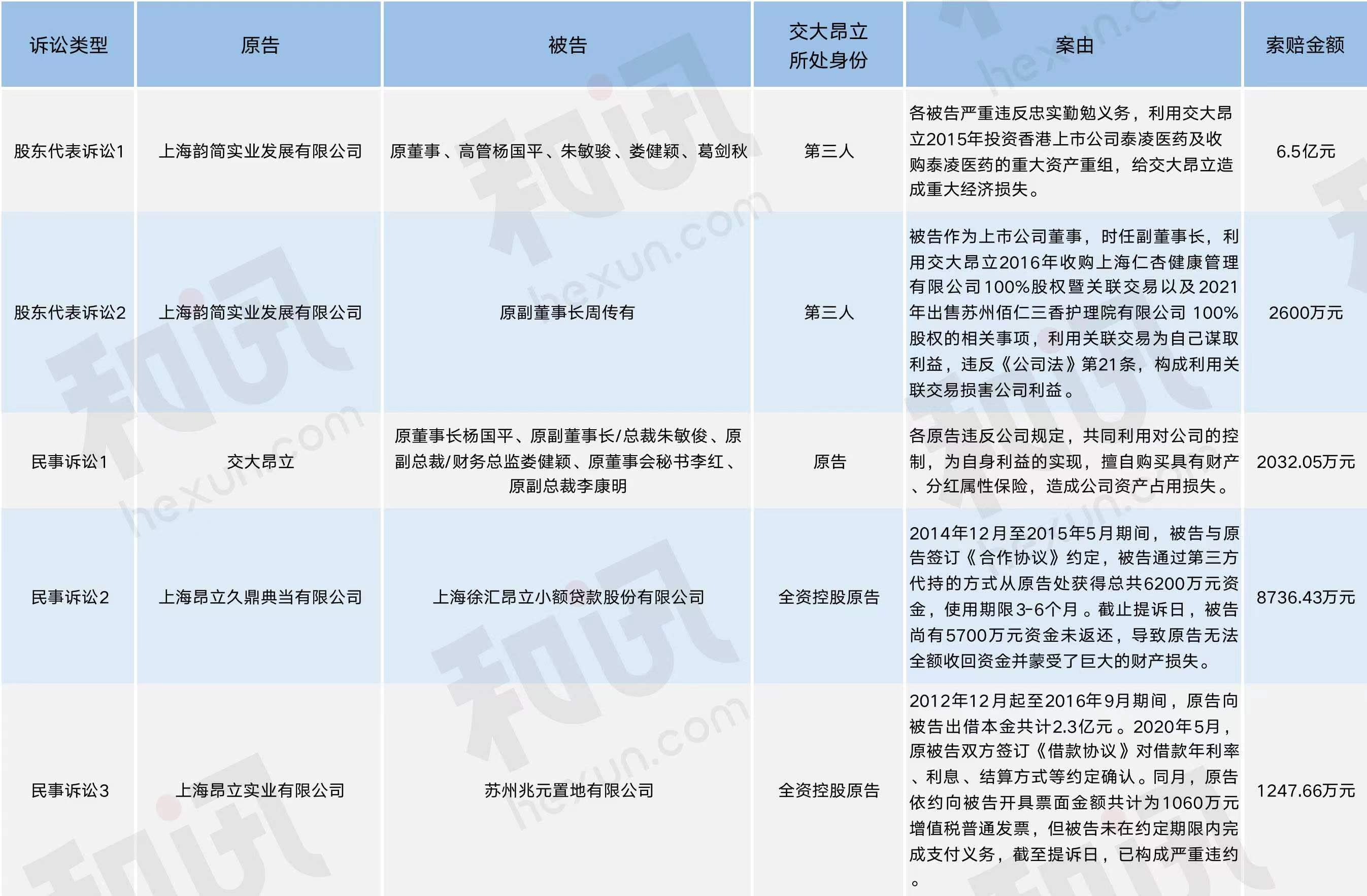 和訊財經(jīng)獲取的一份民事起訴狀顯示,交大昂立原董事長楊國平、原副董事長/總裁朱敏俊、原副總裁/財務(wù)總監(jiān)婁健穎、原董事會秘書李紅、原副總裁李康明等5名被告,因違反公司規(guī)定,共同利用對公司的控制,為自身利益的實現(xiàn),擅自購買具有財產(chǎn)、分紅屬性的保險,造成公司資產(chǎn)占用損失,已被交大昂立提起訴訟,并向5名被告索賠2032.05萬元。