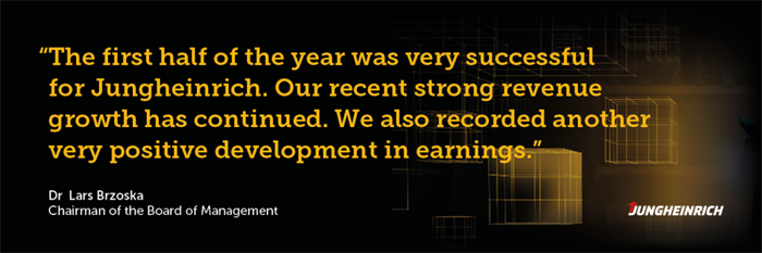 永恒力集團(tuán)董事會主席Lars Brzoska博士解釋道:“今年上半年對永恒力而言可謂碩果累累。我們延續(xù)了近期營業(yè)收入強(qiáng)勁增長的勢頭。增幅達(dá)到了46%,我們在盈利方面再次實(shí)現(xiàn)了極為喜人的增長。通過收購Storage Solutions集團(tuán),我們在美國貨架系統(tǒng)和倉儲自動化領(lǐng)域贏得了一個(gè)重要的增長點(diǎn)。這一點(diǎn)目前已首次體現(xiàn)在集團(tuán)的合并財(cái)務(wù)報(bào)表內(nèi)。我們繼續(xù)推進(jìn)實(shí)施2025+戰(zhàn)略,并確認(rèn)本年度的預(yù)測數(shù)據(jù)。永恒力已經(jīng)為迎接未來做好了充分的準(zhǔn)備?!?/p>