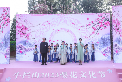 開幕式在孩子們的朗朗讀書聲中緩緩拉開,一群少年身著漢服在朝陽中誦讀《少年中國(guó)說》、《水調(diào)歌頭》。牛欄山地區(qū)黨委書記姜惠琴在致辭時(shí)表示:“以櫻花為媒,舉辦此次櫻花節(jié)活動(dòng),以沉浸式場(chǎng)景演出,融入全民閱讀,文明創(chuàng)城等活動(dòng),相信能夠給大家?guī)硪粓?chǎng)文化盛宴,也將為順義區(qū)打造一個(gè)更加亮麗、持久的文化旅游城市名片?!?月23日,將迎來第28個(gè)世界讀書日。牛欄山作為全國(guó)文明鎮(zhèn),姜惠琴在此倡導(dǎo)大家多讀書,讀好書,以書為媒,為文明創(chuàng)城創(chuàng)建賦能添彩,讓全民閱讀之氣彌漫,讓文明在全社會(huì)蔚然成風(fēng)。