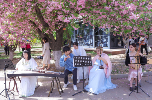 賞櫻線路上,櫻花大道內(nèi)一群青年大學(xué)生身懷技藝,各式才藝展演,民樂、古箏獨(dú)奏、管弦、鋼琴獨(dú)奏、快閃《愛出發(fā)》《花?!贰肚啻壕毩?xí)冊(cè)》《不得不愛》《后會(huì)無期》街舞、中國(guó)舞、樂隊(duì)青春活力,青年大學(xué)生校園科技文化展示區(qū)機(jī)器人展示、大賽作品及藏品展、模型沙盤互動(dòng)、環(huán)保、創(chuàng)城互動(dòng)區(qū)地球日主題、綠色農(nóng)業(yè)創(chuàng)城理念、經(jīng)濟(jì)普法知識(shí)互動(dòng),展示了當(dāng)代大學(xué)生的蓬勃的創(chuàng)新精神和社會(huì)責(zé)任感。