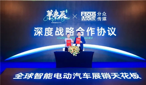在中國,說到勢能,說到心智,說到品牌,我們不得不提到一個(gè)人,那就是我們也看到了的分眾傳媒董事長江南春先生來到了現(xiàn)場,我們把掌聲給他。說到打造品牌勢能和聲勢,在中國我們只要守好一個(gè)天然場景就可以了,那就是成就中國品牌最多,中國2億主流人流必經(jīng)之地的分眾媒體。接下來我們會和分眾形成深度戰(zhàn)略合作!我和江總都有一個(gè)共識,兩家強(qiáng)強(qiáng)聯(lián)合。分眾擁有中國主流人群的入口,有天然向行業(yè)喊話的場景,而華墨擁有會展+數(shù)字化深度運(yùn)營的能力,因?yàn)槲覀儍杉医Y(jié)合,重構(gòu)了營銷,重構(gòu)線下的場景。一定會打造一個(gè)全新會展物種,為智能電動汽車行業(yè)一個(gè)高效的營銷通道,今天江總也會給大家做分享。