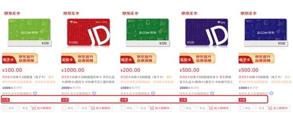 這里再叮囑一句,京東E卡有實(shí)體卡與電子卡之分,商品頁面會有相關(guān)標(biāo)識,購買時務(wù)必認(rèn)準(zhǔn),以免帶來不便。