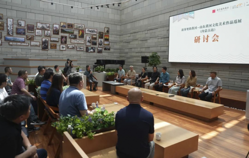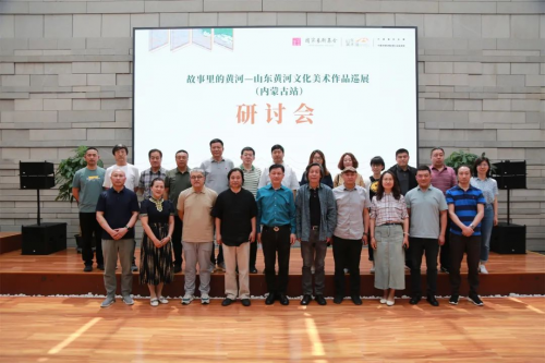 開展當日上午,山東美術(shù)館與內(nèi)蒙古文藝界領(lǐng)導(dǎo)嘉賓、藝術(shù)家一同參觀展覽。隨后,以“黃河故事”為主題的展覽研討會順利舉辦。