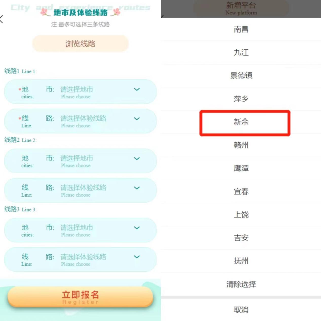 填寫(xiě)信息 選擇新余