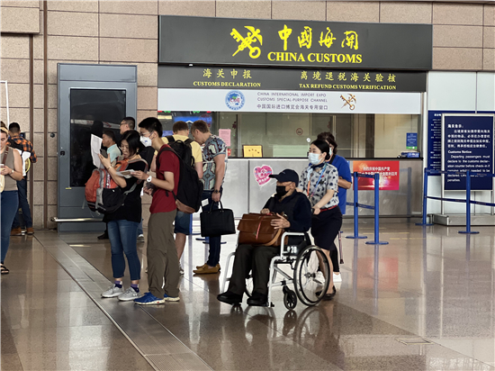 暑運期間客流上升,東航充分發(fā)揮上海虹橋、浦東兩場候機樓國內(nèi)、國際值機區(qū)自助值機設備和自助行李托運設備作用,在客流高峰時段,對排長隊的旅客進行分流。