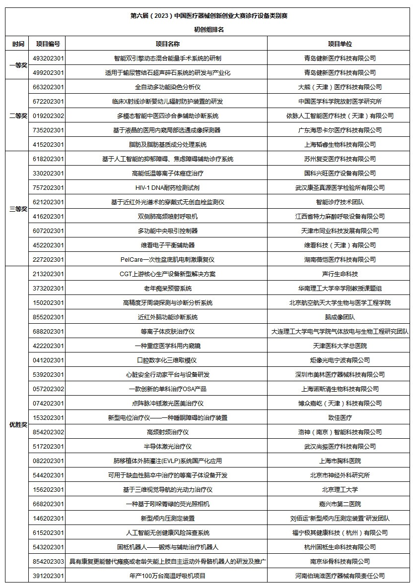 診療設(shè)備類別賽初創(chuàng)組排名