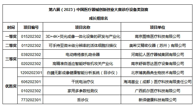 診療設(shè)備類別賽初創(chuàng)組最終評選出一等獎2個,二等獎5個,三等獎8個,優(yōu)勝獎21個。