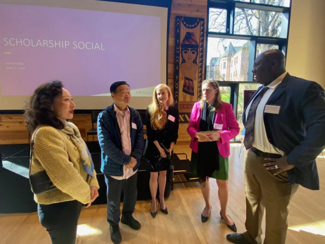 2023年4月25日,華盛頓大學醫(yī)學院舉辦獎學金捐贈人答謝酒會,華大醫(yī)學院以及華大醫(yī)院代理院長Timothy Dellit博士、華大醫(yī)學院副院長Gerald Tolbert博士、華大醫(yī)學院校友會前任會長Pam Yung博士等出席酒會并致辭,華大醫(yī)學院獎學金的受贈人代表分享了他們獲得獎學金資助如何改變了他們的學業(yè)和人生。華盛頓大學醫(yī)學院的師生、獎學金捐贈人等近百人參加了酒會。作為華大醫(yī)學院獎學金的贊助商,505集團公司總裁、中美加友好協會主席來輝武教授受邀參加了這次酒會,并與華大醫(yī)學院師生親切交流。