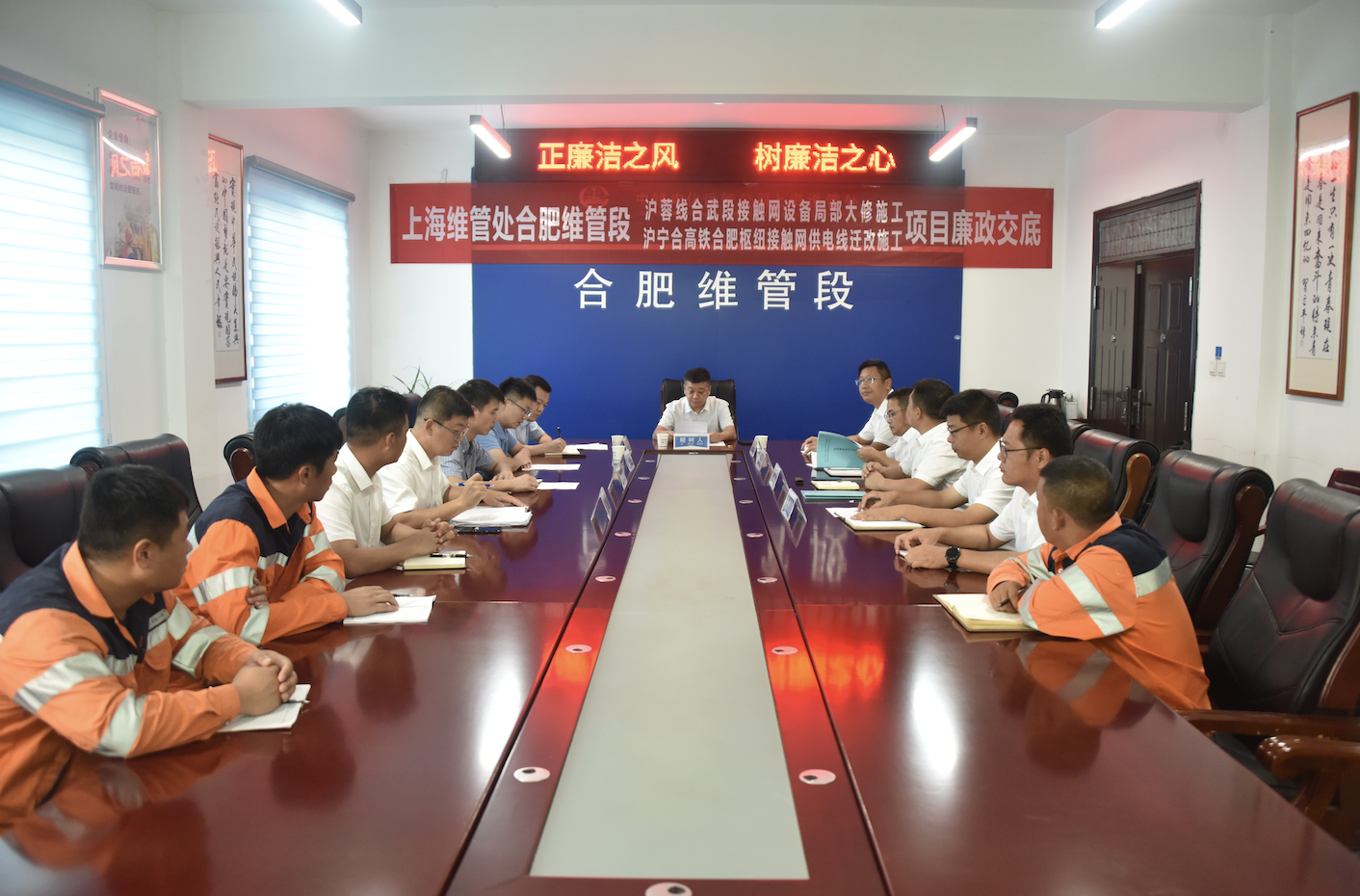 8月24日上午,中國中鐵電氣化局運(yùn)管公司上海維管處合肥維管段對合肥維管段滬蓉線合武段接觸網(wǎng)設(shè)備局部大修施工項(xiàng)目和滬寧合高鐵合肥樞紐接觸網(wǎng)供電線遷改施工項(xiàng)目進(jìn)行黨風(fēng)廉政交底。單位各級領(lǐng)導(dǎo)和工程項(xiàng)目關(guān)鍵崗位人員共計19人參加廉政交底會議。