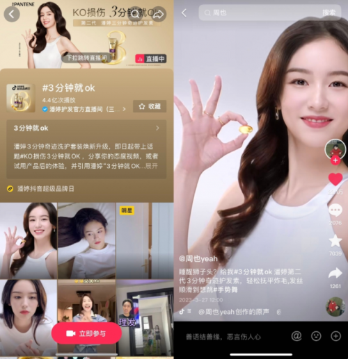 回顧此次活動,抖音電商超級品牌日深入洞察生活方式變化,結(jié)合潘婷品牌理念和新品發(fā)布,經(jīng)由明星與頭部達人參與#3分鐘就OK 挑戰(zhàn)賽、明星出席發(fā)布會、抖音微博熱搜引流、站內(nèi)主播實力帶貨,基于抖音全域興趣電商生態(tài)優(yōu)勢,幫助品牌實現(xiàn)品效合一。