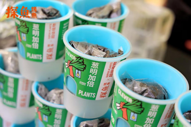 在產(chǎn)品研發(fā)上,探魚也充分考慮了顧客在感官、味覺、互動(dòng)等多方面的場景體驗(yàn),最新推出的“鮮青椒蔥蔥烤魚”就充分體現(xiàn)了這一點(diǎn)。鮮青椒蔥蔥烤魚在創(chuàng)新理念上,是探魚招牌口味“鮮青椒爽麻烤魚”口味的味型升級(jí),在藤椒口味的基礎(chǔ)上增加時(shí)令性的蔥香風(fēng)味,一經(jīng)推出,就頗受大眾喜愛。據(jù)悉,新品上市7天,已經(jīng)比去年同期上新的烤魚銷量上漲105%。在產(chǎn)品呈現(xiàn)上,新品上餐時(shí)配上一整棵鮮甜大蔥,然后由服務(wù)人員現(xiàn)場進(jìn)行“剪蔥儀式”,將蔥段下入鍋內(nèi),提味增香,同時(shí)為消費(fèi)者營造一種新奇特的體驗(yàn)感。除此之外,探魚借勢本次上新,與最近大熱的植物品牌“超級(jí)植物公司”聯(lián)名推出可以種出小蔥的“蔥明種子卡”,不僅深化蔥的產(chǎn)品主題,還收獲了目標(biāo)客群“打工人”的情感共鳴。