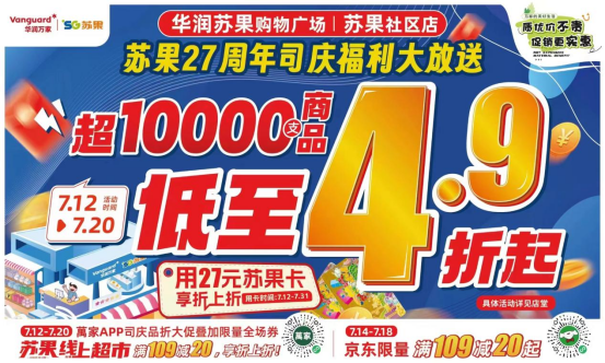 響應(yīng)政府促消費(fèi)擴(kuò)內(nèi)需,進(jìn)一步激發(fā)市場(chǎng)活力的號(hào)召。蘇果于7月12日-7月20日期間,將打造為期9天的司慶購物節(jié),聯(lián)合百家重點(diǎn)廠商推出10000余商品4.9折起、會(huì)員超值換購、跨界合作等一攬子促消費(fèi)舉措,同時(shí)賦能商品力,全方位升級(jí)購物體驗(yàn),屆時(shí)將釋放新一輪消費(fèi)潛力。