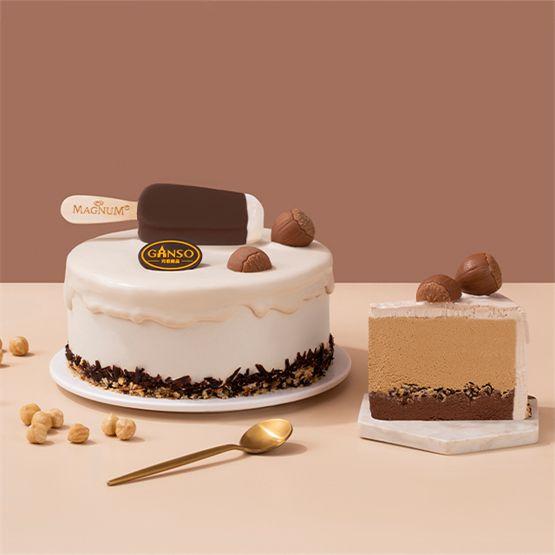 意式榛子巧克力味的元夢絲巧冰淇淋蛋糕,一上市就憑借濃郁風(fēng)味迅速走俏市場,獲得了巧克力控的廣泛青睞。元祖與夢龍聯(lián)名款元夢絲巧冰淇淋蛋糕,奶油淋面上是夢龍香草巧克力雪糕,內(nèi)里是土耳其進(jìn)口榛子醬制成的榛子口味冰淇淋和進(jìn)口可可制成的巧克力口味冰淇淋夾層,再點(diǎn)綴上酥脆巴旦木,給人以細(xì)膩、松脆、順滑的多重口感,濃濃的巧克力風(fēng)味更是讓人回味無窮。