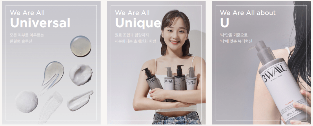 3WAAU是韓國(guó)COSMAX科絲美詩今年3月推出的定制型化妝品平臺(tái)。WAAU取自We Are All Unique的縮寫,包含了面向個(gè)人化·細(xì)分化化妝品市場(chǎng)的服務(wù)理念。