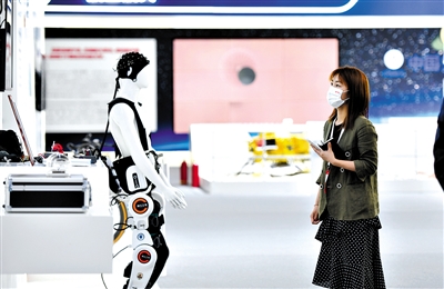 參觀者在第六屆世界智能大會(huì)上參觀天津制造業(yè)立市展。 新華社記者 趙子碩 攝
