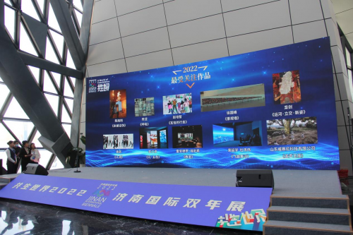 展覽匯聚了來(lái)自全球22個(gè)國(guó)家和地區(qū)221名藝術(shù)家的272件當(dāng)代藝術(shù)精品,共分為“當(dāng)代與傳統(tǒng)”“人與自然”“地域與世界”“現(xiàn)實(shí)與虛擬”“科技與藝術(shù)”“異彩與同源”六大版塊,異彩紛呈,融合共生。值得一提的是,本屆雙年展突出了科技與藝術(shù)的結(jié)合,大量使用虛擬仿真、AR、VR、人機(jī)交互、3D打印、影像互動(dòng)等科技應(yīng)用的作品,推動(dòng)了藝術(shù)與科技的跨界融合,實(shí)現(xiàn)了作品的多元形態(tài)表達(dá),極大地增強(qiáng)了觀眾的沉浸式觀展體驗(yàn)?!渡裨挕贰?9赫茲》《飛越黃河》《未被證偽》等眾多互動(dòng)性、參與性強(qiáng)的作品,迅速走紅各大網(wǎng)絡(luò)平臺(tái)?!儿o華十二時(shí)》《謎·城系列》《金聲玉振》等大量蘊(yùn)含山東元素的作品,則推動(dòng)2022濟(jì)南國(guó)際雙年展以更加開(kāi)放的姿態(tài)、更加包容的胸懷、更加豐富的形式與國(guó)際前沿當(dāng)代藝術(shù)有機(jī)結(jié)合,與沉浸式體驗(yàn)“齊魯文化IP”有機(jī)結(jié)合,讓優(yōu)秀傳統(tǒng)文化煥發(fā)新光彩,也為“文旅+”探索出更多精彩的可能。