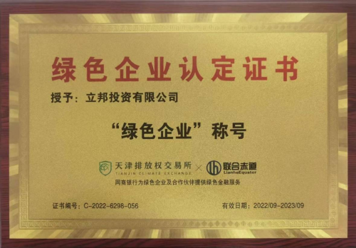 立邦獲得綠色企業(yè)認(rèn)定證書