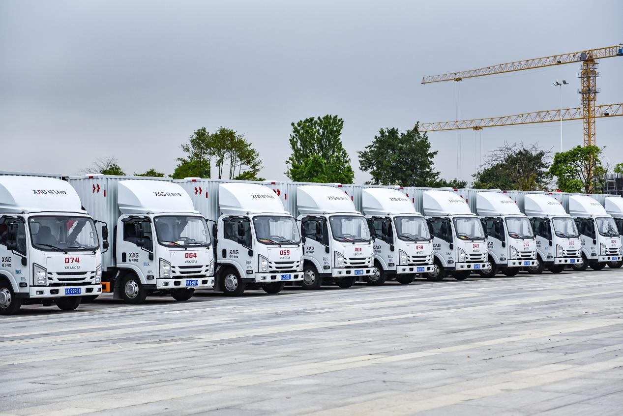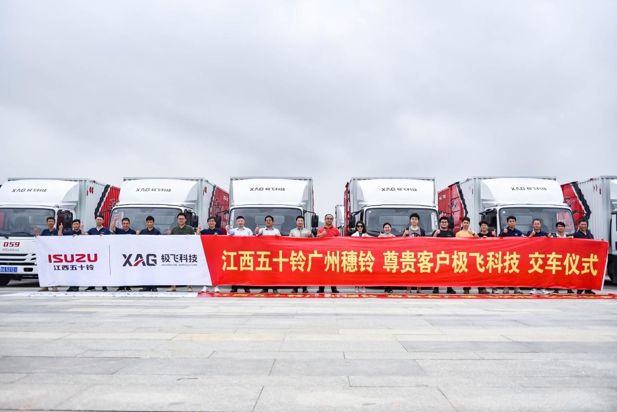 3月22日,隨著指揮人的一聲發(fā)號指令,112臺江西五十鈴翼放ES7從廣州中新知識城公園浩浩蕩蕩出發(fā),駛向它們的新家——極飛科技公司總部,踏上智慧農(nóng)業(yè)的征途。