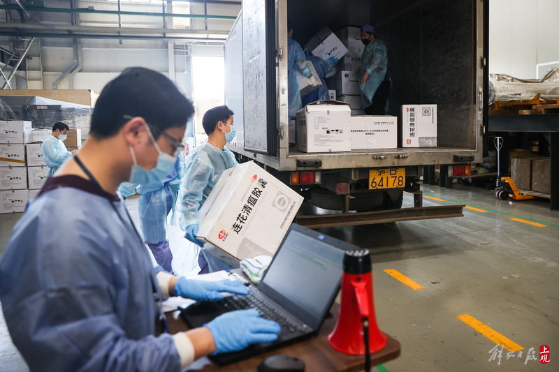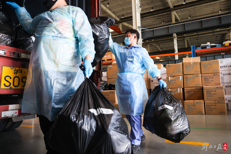 為不增加基層負(fù)擔(dān),寶山區(qū)啟用7個分揀點(diǎn)對應(yīng)13個街鎮(zhèn)園區(qū),由招募來的企業(yè)職工及志愿者流水線作業(yè),對物資開展卸貨、分裝。
