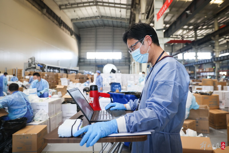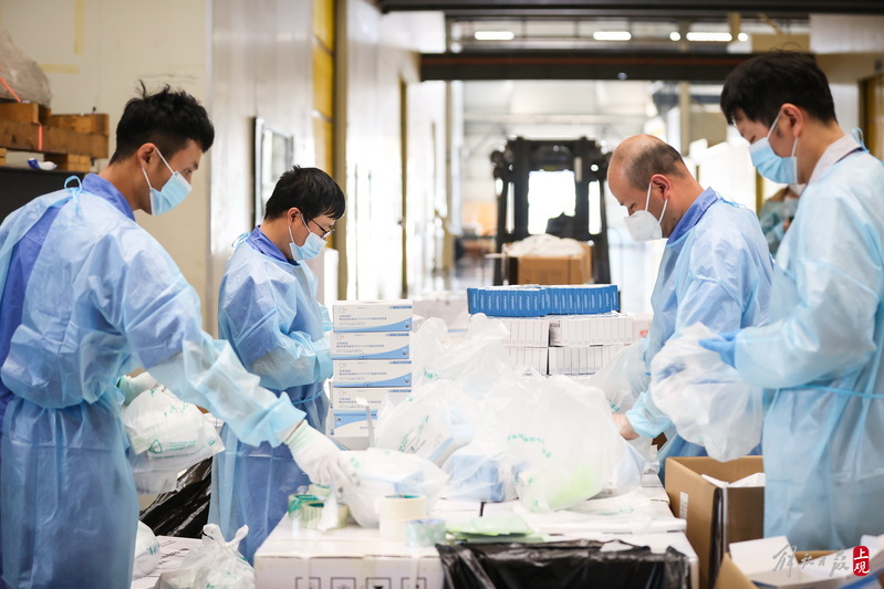 現(xiàn)場負(fù)責(zé)人楊東告訴記者:“我們是4月6日晚上接收到分裝任務(wù),目前累計打包送出8萬余份‘防疫服務(wù)包’,我們從早到晚能快一點(diǎn)就快一點(diǎn),就想著盡快把物資打包好送到居民手中。”