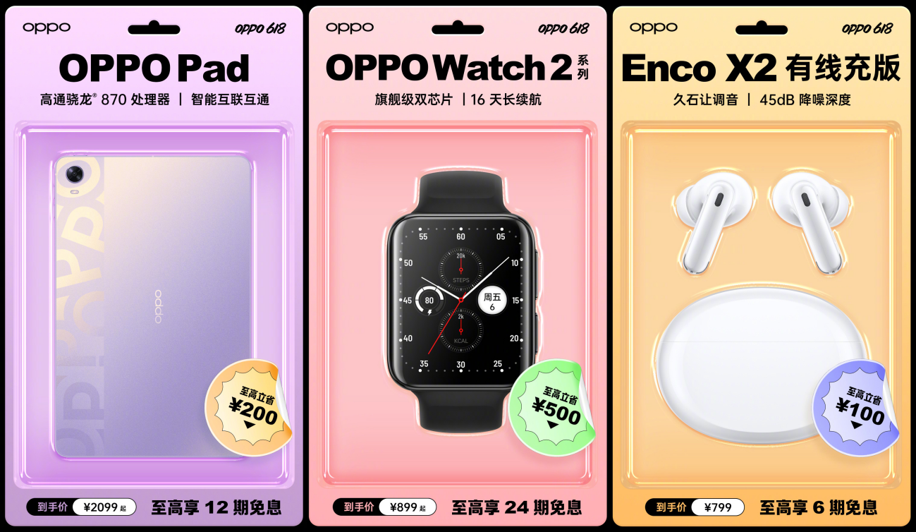 除了以上各款智能手機(jī)以外,OPPO豐富的IoT產(chǎn)品也擁有不同程度的優(yōu)惠,搭載驍龍870處理器的OPPO Pad平板電腦至高立省200,到手價(jià)僅2099元起;OPPO Watch 2系列至高立省500,到手價(jià)899元起,還可享24期免息;真無線藍(lán)牙耳機(jī)OPPO Enco Air2 Pro至高立省50元,僅需249即可入手。