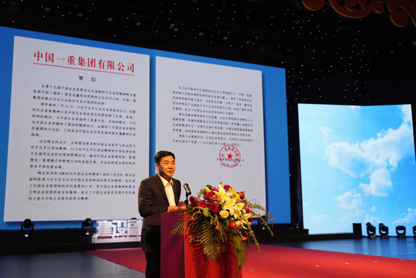 《中國企業(yè)報》集團(tuán)副總裁張博宣讀中國一重集團(tuán)有限公司發(fā)來的賀信