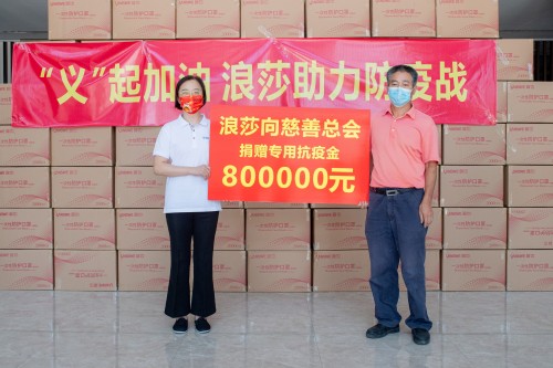 8月18日,浪莎集團董事長、義烏民建會員翁榮金代表企業(yè)浪莎集團向義烏市慈善總會和義烏市教育局捐贈100萬元,以表達對政府的感恩之情和對社會的關(guān)愛之情。捐贈包括了80萬元現(xiàn)金,及30萬個口罩、防曬衣、冰袖和襪子等共價值20萬元的防疫物資,教育局、工商聯(lián)、市場委、慈善總會和義烏民建等單位的領(lǐng)導(dǎo)出席本次捐贈儀式活動。