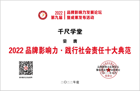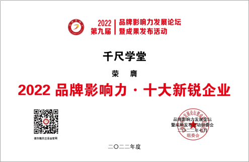 近日,由《發(fā)現(xiàn)品牌》欄目組、對(duì)外經(jīng)濟(jì)貿(mào)易大學(xué)中國(guó)國(guó)際品牌戰(zhàn)略研究中心、《中國(guó)企業(yè)報(bào)》集團(tuán)主辦的2022品牌影響力發(fā)展論壇暨成果發(fā)布活動(dòng)正式舉辦?;顒?dòng)以“大力發(fā)展品牌戰(zhàn)略促進(jìn)經(jīng)濟(jì)高質(zhì)量發(fā)展”為主題。圍繞中國(guó)品牌創(chuàng)建行動(dòng),培育新型消費(fèi),實(shí)施領(lǐng)航企業(yè)培育工程,促進(jìn)專精特新小巨人企業(yè)培育等內(nèi)容展開分析探討。在著重推介具有優(yōu)秀成長(zhǎng)性或影響力的品牌環(huán)節(jié)中,千尺學(xué)堂榮膺“2022品牌影響力·十大新銳企業(yè)”、“2022品牌影響力·踐行社會(huì)責(zé)任十大典范”兩項(xiàng)大獎(jiǎng)。