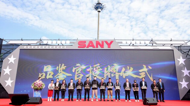 (三一重機(jī)董事長(zhǎng)陳家元先生向“三新”品鑒官授牌)