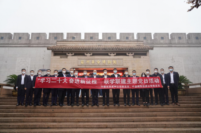11月17日,蘇州公司黨總支與中建國(guó)際投資公司黨總支攜手共赴蘇州革命博物館、中共蘇州獨(dú)立支部舊址開(kāi)展“學(xué)習(xí)二十大 奮進(jìn)新征程”聯(lián)學(xué)聯(lián)建主題黨日活動(dòng)。東孚蘇州公司黨總支部分黨員代表,中建國(guó)際投資公司黨總支部分黨員、入黨積極分子代表共計(jì)20余人參加活動(dòng)。
