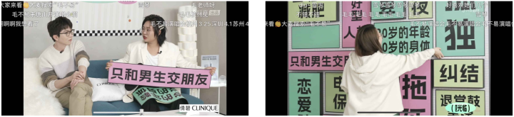 經(jīng)過(guò)前期的聲量積累,倩碧在直播環(huán)節(jié)中更為聚焦于將創(chuàng)新綜藝形式與品牌宣傳結(jié)合,通過(guò)片頭片尾廣告片、桌面產(chǎn)品擺放、嘉賓創(chuàng)意口播等形式植入品牌和產(chǎn)品形象。