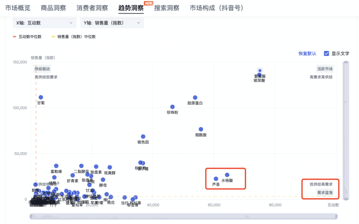 很多品牌在投放時才想到標簽,但基于「云創(chuàng)行業(yè)標簽」的行業(yè)視角,品牌可以深入了解消費者需求和市場趨勢,在產(chǎn)品賣點、功效、成分、使用場景等更細的維度做更深度洞察,比如了解消費者對某些成分的偏好和需求,挖掘產(chǎn)品的優(yōu)點和優(yōu)勢,以此作為關(guān)鍵詞進行推廣。通過這種方式,品牌可以做出更明智的營銷決策,選對賽道、做好內(nèi)容。
