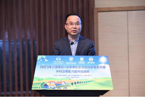 2023年4月18日,由中國鄉(xiāng)村發(fā)展基金會、中國東方資產(chǎn)管理股份有限公司、東興證券股份有限公司主辦,中國社會科學(xué)院大學(xué)承辦的2023年興源惠民中央單位定點幫扶縣基層干部鄉(xiāng)村治理能力提升培訓(xùn)班在京召開。中國鄉(xiāng)村發(fā)展基金會秘書長陳紅濤,中國社會科學(xué)院大學(xué)黨委常委、副校長,中國社會科學(xué)院研究生院副院長林維,中國社會科學(xué)院大學(xué)黨委常委、紀(jì)委書記、副校長,中國社會科學(xué)院研究生院副院長尤利前,中國東方資產(chǎn)管理股份有限公司定點幫扶辦高級經(jīng)理魏東東,東興證券股份有限公司黨委副書記、監(jiān)事會主席秦斌等領(lǐng)導(dǎo)出席開班儀式并講話。