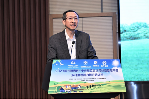 中國社會科學(xué)院大學(xué)副校長林維在發(fā)言中表示,中國社會科學(xué)院大學(xué)是一所培養(yǎng)人文社會科學(xué)拔尖人才的研究型大學(xué),在師資隊伍中有諸多關(guān)注我國三農(nóng)問題、研究農(nóng)村發(fā)展的著名專家,他們?yōu)橹袊r(nóng)村的改革進(jìn)程咨政建言、出謀劃策,踐行“為人民做學(xué)問、把學(xué)術(shù)做在祖國大地上”的使命擔(dān)當(dāng)。他表示,為了讓學(xué)員們學(xué)有所獲,培訓(xùn)班前期精心籌備,在課程設(shè)置、師資配備以及學(xué)員服務(wù)等方面均進(jìn)行了周密安排,社會與民族學(xué)院以及大學(xué)各職能處室都做了大量的工作,目的只有一個,即努力提高培訓(xùn)質(zhì)量,讓大家學(xué)有所獲。他期待各位學(xué)員能通過這次內(nèi)容豐富、形式多樣的培訓(xùn)進(jìn)一步提高水平,開闊眼界,碰撞思想,交流經(jīng)驗,切實提高政策理論水平和業(yè)務(wù)能力,更好發(fā)揮在鄉(xiāng)村振興中的“主心骨”和引領(lǐng)帶動作用。