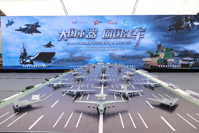 輝煌歷程展區(qū)以時(shí)間主線,將我國(guó)軍事科技領(lǐng)域的重要任務(wù)和重大事件,形成時(shí)空長(zhǎng)廊,再現(xiàn)“大閱兵”的恢宏場(chǎng)景;陸戰(zhàn)驕子展區(qū)則是展示陸軍現(xiàn)代化建設(shè)成果的重要展區(qū),各型1:1比例的裝備模型,讓人們深刻體會(huì)到中國(guó)陸軍裝備的壯大;劍指深藍(lán)展區(qū)聚焦海軍強(qiáng)大艦艇裝備,各型號(hào)軍艦和先進(jìn)武器系統(tǒng)的展示讓人們感受到海軍走向深藍(lán)的勇氣;藍(lán)天利刃展區(qū)則展示空軍先進(jìn)武器和戰(zhàn)機(jī),各型號(hào)戰(zhàn)機(jī)和導(dǎo)彈的專業(yè)介紹讓人們體驗(yàn)到空軍的迅猛發(fā)展;鳴嘯長(zhǎng)空展區(qū)則是以“兩彈一星”為主力展品,并結(jié)合導(dǎo)彈發(fā)射車、空天一體打擊體系等內(nèi)容,展示我國(guó)戰(zhàn)略打擊力量;深空探秘展區(qū)則是展示我國(guó)太空事業(yè)發(fā)展成果的重要展區(qū),各類衛(wèi)星、火箭、空間站的展示,讓人們感受到中國(guó)太空事業(yè)的高速發(fā)展。