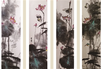《清蓮》國畫 136×35cm×4條屏 2021年