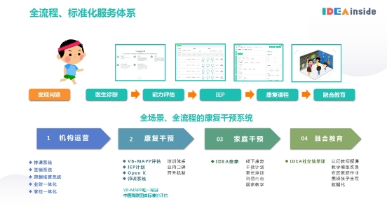 只需一間20平米的示范教室,運(yùn)用標(biāo)準(zhǔn)化的服務(wù)方案,就可以把深耕行業(yè)多年沉淀的IDEA教學(xué)模式帶回機(jī)構(gòu)/學(xué)校/幼兒園/醫(yī)療單位,進(jìn)行數(shù)字化、標(biāo)準(zhǔn)化的康復(fù)干預(yù)。一個(gè)標(biāo)準(zhǔn)的、數(shù)字化管理的愛迪因教學(xué)示范教室,可以復(fù)制到任何一個(gè)線下中心,開展專業(yè)兒童康復(fù)干預(yù)。