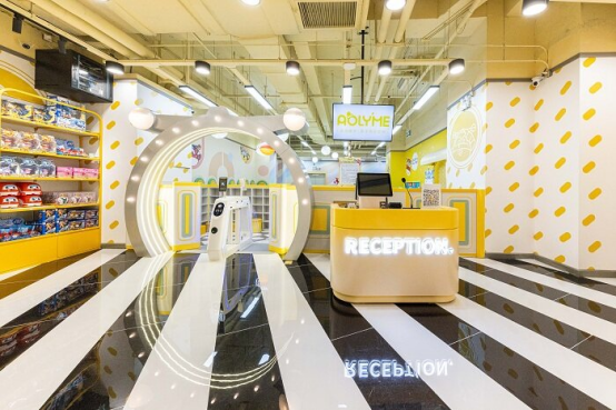 店面依舊是以黃色為主色調(diào),但色調(diào)整體變?yōu)楦尤岷?、低飽和度的杏仁餅干黃,運用夢幻而童真的馬卡龍色系,打造輕奢活力的風格,搭配出時尚的景點,富有想象力且充滿包容性,就像一個溫暖的“家”,驅(qū)散顧客心頭的陰霾。