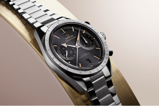 歐米茄2013年首次推出超霸’57表款,當(dāng)時是自動上鏈機芯,采用歐米茄獨家的同軸擒縱技術(shù),是歐米茄自制同軸機械機芯系列中首款計時機芯,具有里程碑意義。
