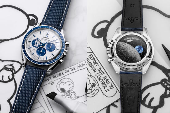 比如近兩年大家熟知的“史努比”表款,為紀(jì)念歐米茄獲得“史努比獎”而作,便屬于超霸家族里的周年腕表,2020年推出的50周年紀(jì)念款,表背有坐飛船環(huán)繞航行的史努比,非??蓯?。