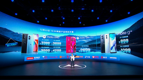 2022年12月15日19時30分,聯(lián)想moto召開了以“心無畏,赴山?!睘橹黝}的新品發(fā)布會,正式發(fā)布了moto X40、moto G53和moto S30 Pro潘通限量版(非凡洋紅)三款新品。其中,“手機中的SUV”moto X40,首發(fā)價3399元起;“千元5G全擊手”moto G53,首發(fā)價899元起;而moto S30 Pro潘通限量版(非凡洋紅),首發(fā)價則是2699元起。