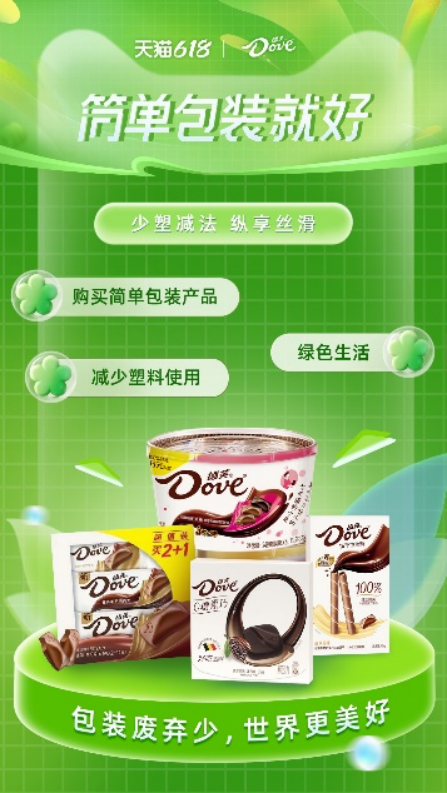 旗下德芙部分可持續(xù)包裝產(chǎn)品上線天貓618“簡單包裝就好”專區(qū)