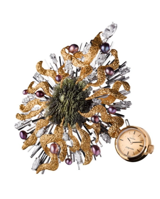 左:Gilbert Albert為1964年紐約世博會設(shè)計(jì)的歐米茄隕石寶石可拆卸項(xiàng)鏈表